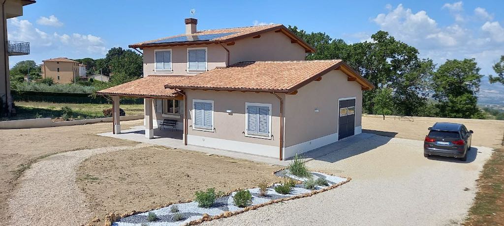 La casa è sviluppata su due livelli, in pianta ha una superficie di circa 200 mq, la struttura è stata realizzata con il sistema costruttivo “Platform Frame Subissati” con prestazione elevate sia sotto l’aspetto sismico che energetico.