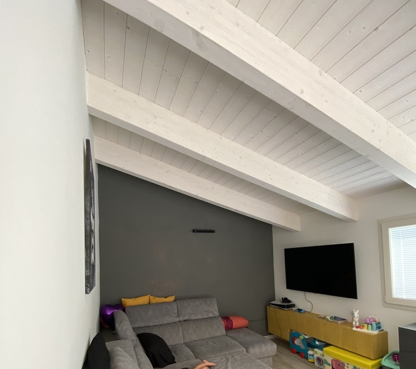 La sopraelevazione è stata realizzata dopo aver demolito il vecchio tetto e consolidato l’ultimo solaio dell’edificio esistente, si sviluppa su una superficie in pianta di circa 130 mq, la struttura è stata realizzata con il sistema costruttivo “Platform Frame Subissati” con prestazione elevate sia sotto l’aspetto sismico che energetico.